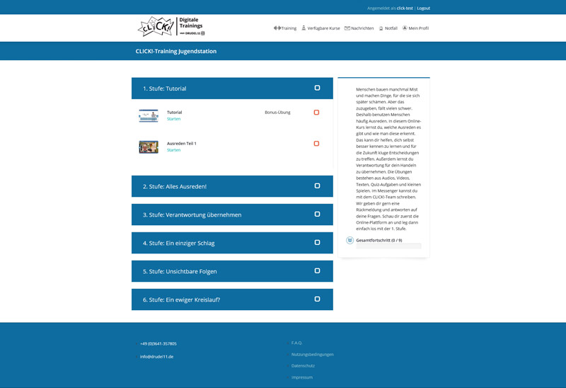 Gestaltungsprinzipien wie Interaktivität, Multimedialität und Gamification machen die Trainings für Jugendliche attraktiv. Parallel zu den Kursen werden die Teilnehmenden individuell per Messenger unterstützt. Dadurch können auch im digitalen Raum professionelle Beziehungen aufgebaut werden.